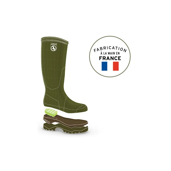 - Semelle intérieur en mousse absorbante sur base caoutchouc, doublée Softex (Polyester permettant un séchage rapide, une resistance à l’abrasion et un meilleur confort).