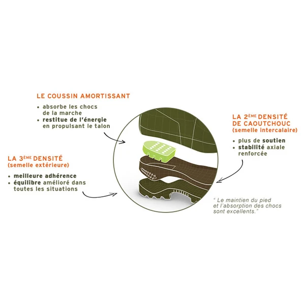 - Semelle extérieur amortissante en 3 densité de caoutchouc avec coussin amortissant dans le talon