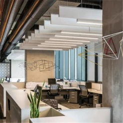 Ecophon Master E se pose sur ossature apparente T24 en acier galvanisé. Chaque panneau est facilement démontable.