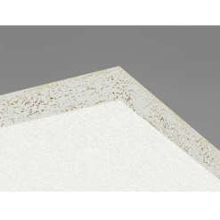 Système de plafond suspendu sans ossature visible, offrant un démontage individuel de tous les panneaux indépendamment les uns des autres, composé de panneau en laine de verre de 3ème génération de haute densité. La face visible est traitée Akutex FT, et la face cachée est revêtue d’un voile de verre. Les chants sont biseautés et forment une rainure discrète entre les panneaux. Les bords sont peints.
