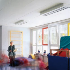 système acoustique, développé principalement quand l’installation d’un plafond mur à mur est impossible. Les Baffles conviennent dans des bâtiments où le volume doit être préservé, où la lumière naturelle doit pouvoir parvenir d’au-dessus, ou pour les applications avec dalles béton à inertie thermique (TABS-Thermally Activated Building System), puisque l’air circule tout autour des panneaux.