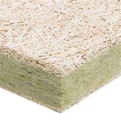 Panneaux autoportants en laine de roche revêtus sur la face apparente d’un complexe voile renforcé par une grille de verre armée de couleur et d’un voile de verre naturel sur la contre face, pour la réalisation de plafond suspendus.