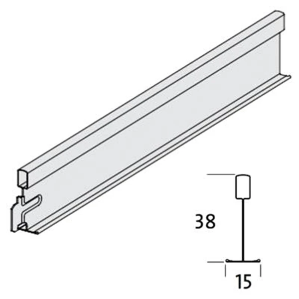 Entretoise système ossature apparente HOOK-ON (à crochet) T15, en acier prélaqué blanc standard. Section T15/38. Pas de lumière 300 mm.